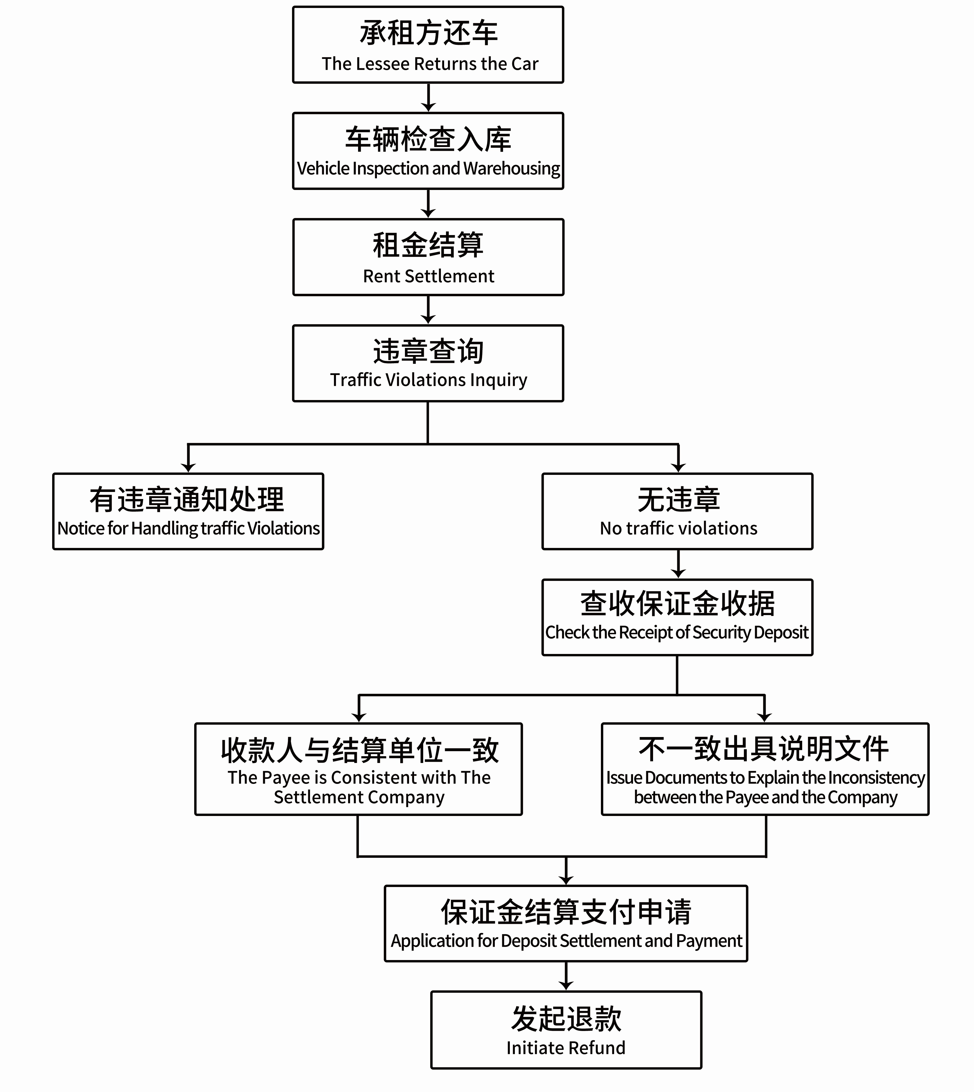 Deposit collection: If you choose the margin guarantee method when renting vehicles,the lessee shall pay a deposit to the lessor when signing the car renta l contract. The lessor shall issue corresponding documents to the lesseeβ when collecting the deposit, and should not misappropriate the deposit ₹for other purposes.