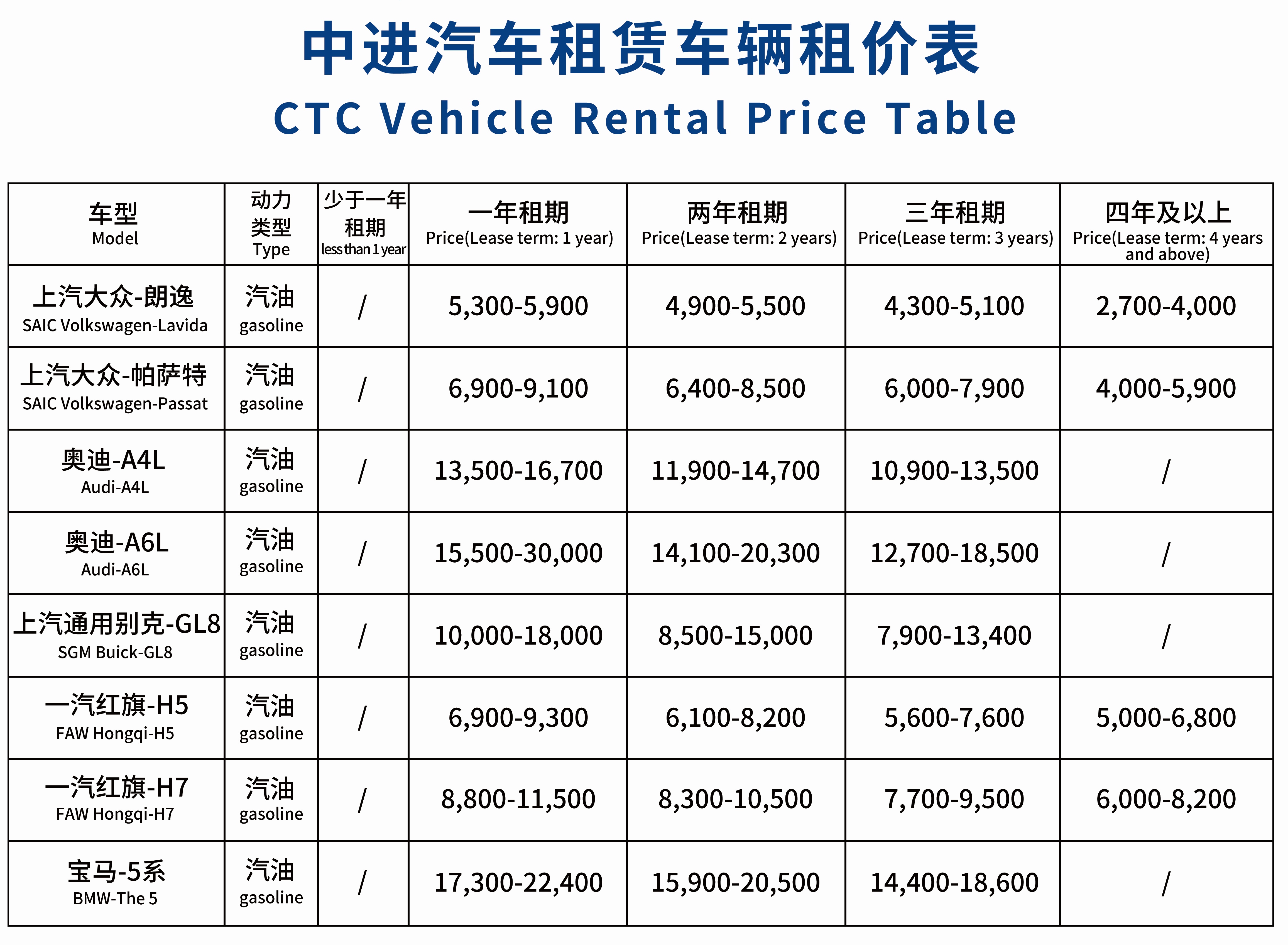 5、Vehicle rent is influenced by multiple factors such as lease term, v$ehicle configuration, degree of newness, vehicle age, and cont♦ract service content, the rent is subject to the contract.